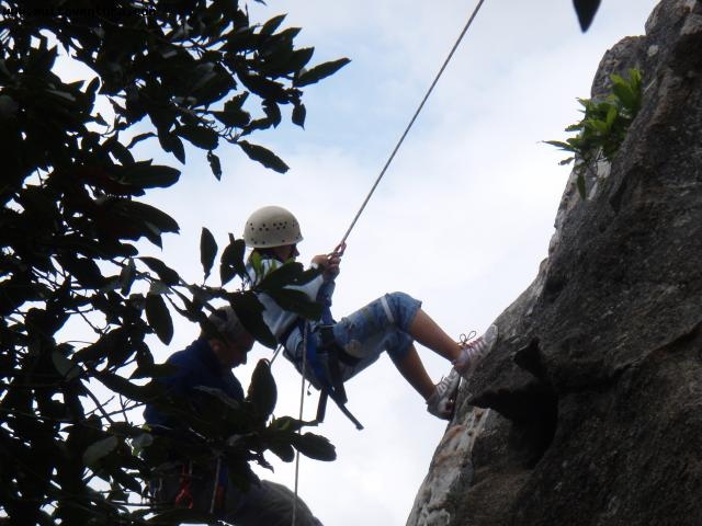 In this challenge they have make a rappel descent of 30 meters in natural rock with a purpose: The conquest of the castle!