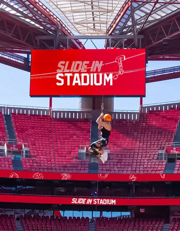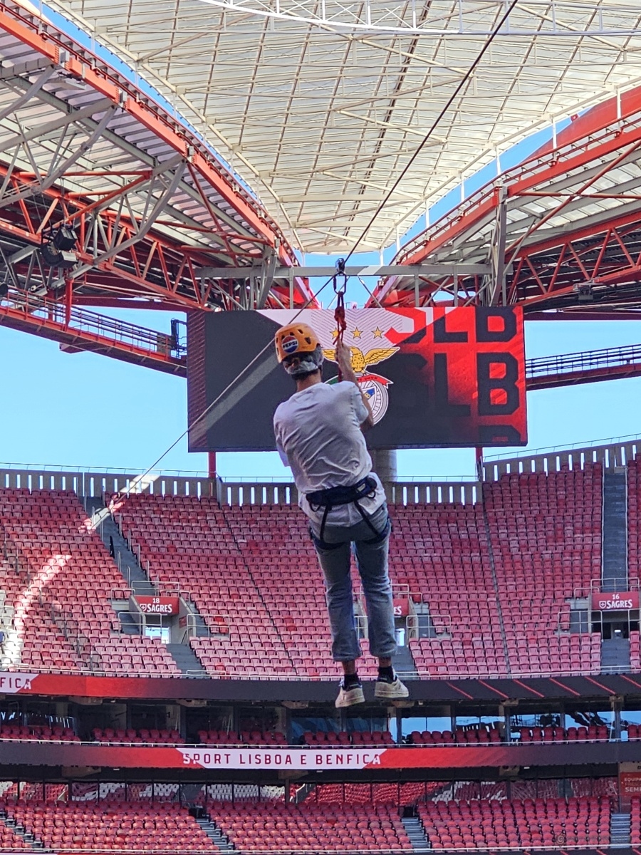 In 2025, at Easter, summer and Christmas, the adrenaline took over Estádio da Luz with a thrilling zipline ride stretching from one end of the pitch to the other! A unique adventure, experienced from above, that left a mark on everyone who took the leap.
