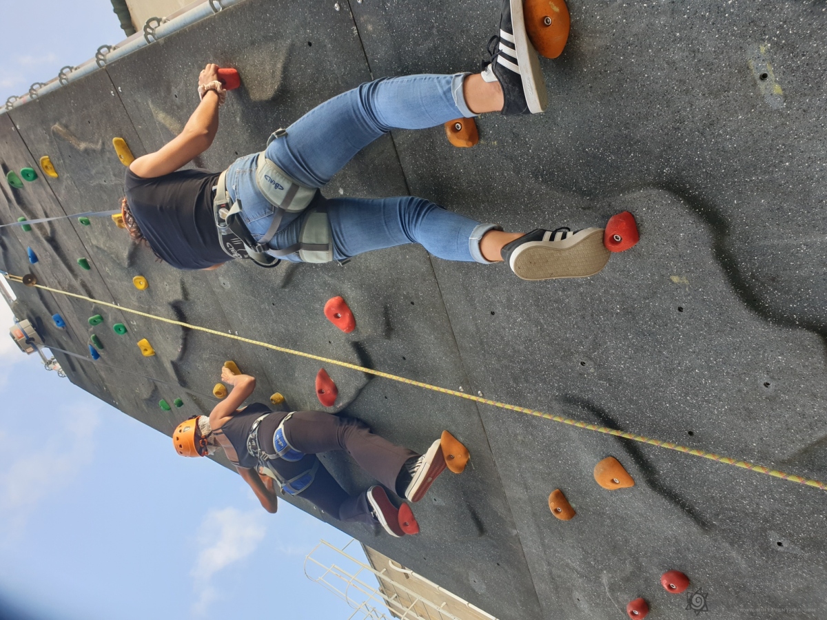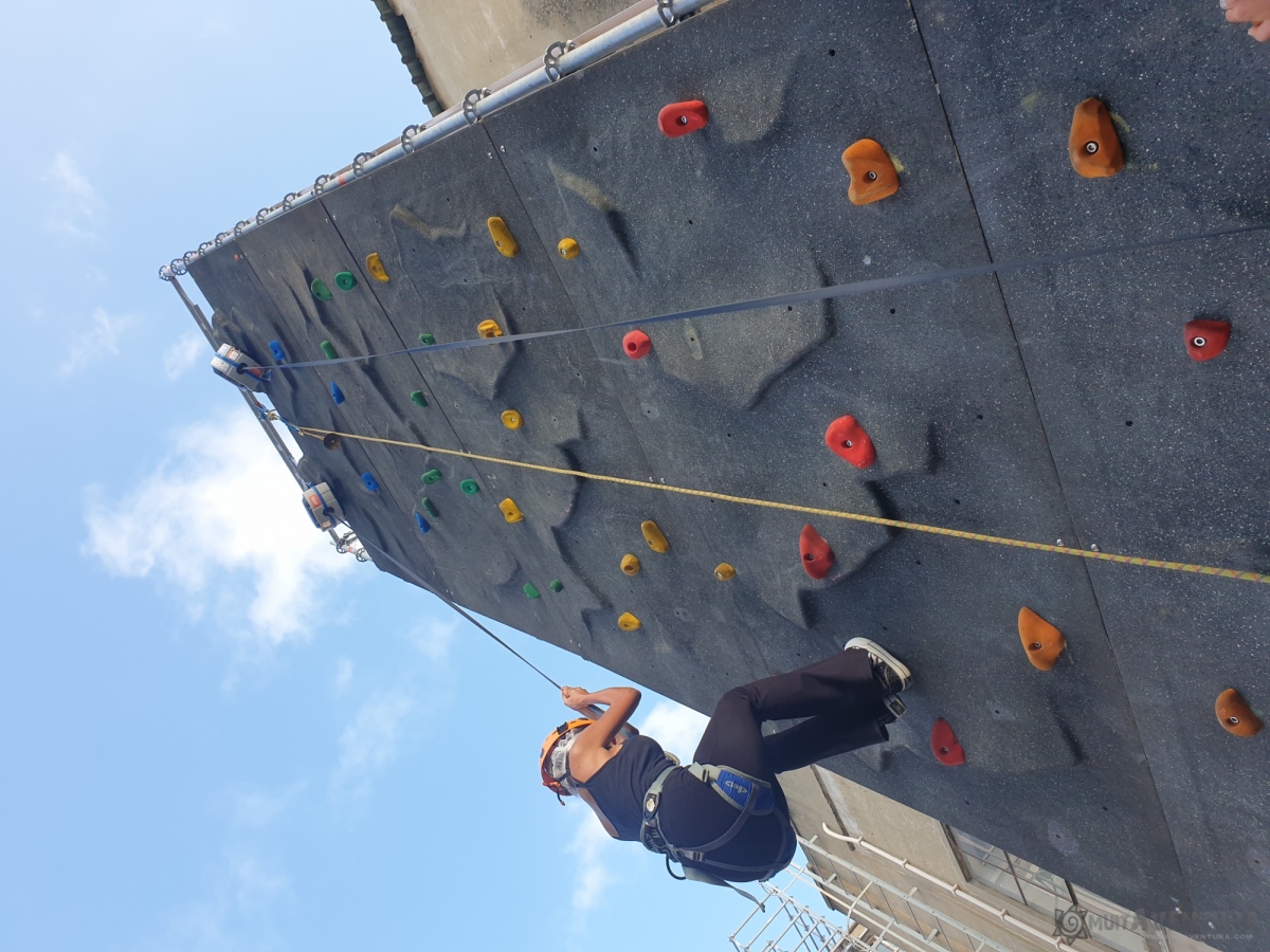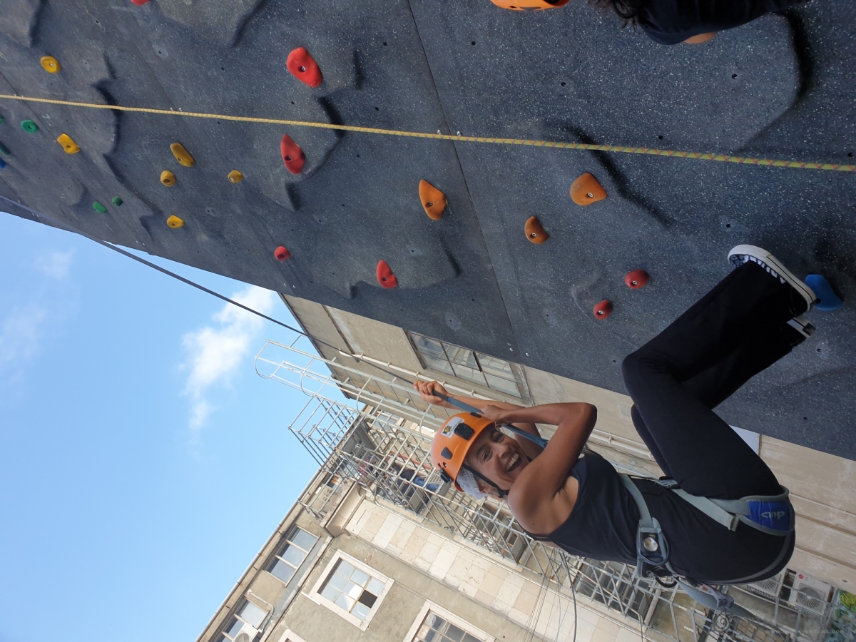 Con la técnica más avanzada de Belay - Trublue --, los participantes tendrían que escalar el muro de escalada artificial de 9 m lo más rápido posible.