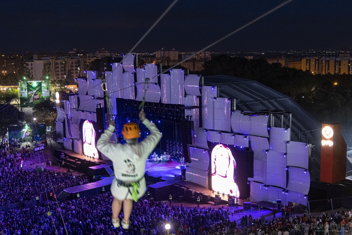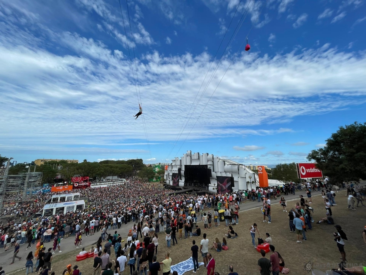 Este ano, voámos sobre o publico, numa extensão maior, 205 metros, e práticamente por dentro do Palco do Mundo.